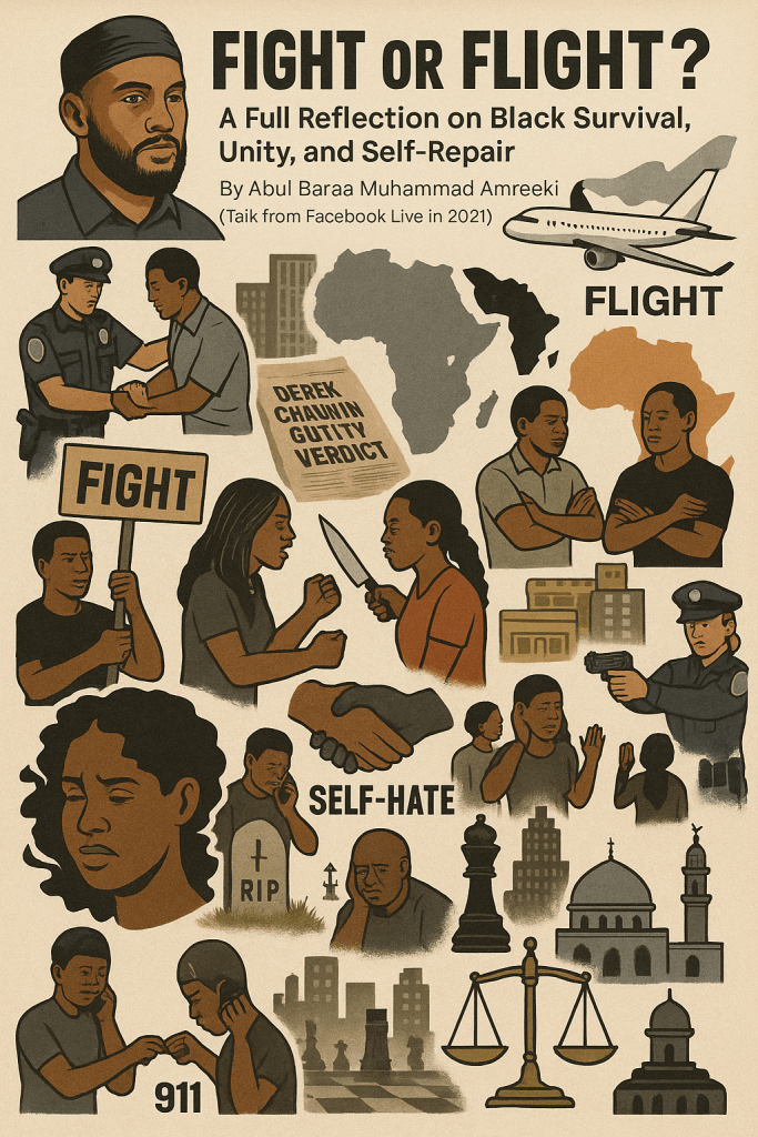 I’m a foreigner on Facebook, and I want to make a little video—a short talk—about a big question I hear African-American Muslims and the wider Black conscious community discussing: systemic racism in the U.S.—should Black people fight or take flight? In other words, should Black people in America keep fighting the system here, or should they take flight—leave and go to another country?