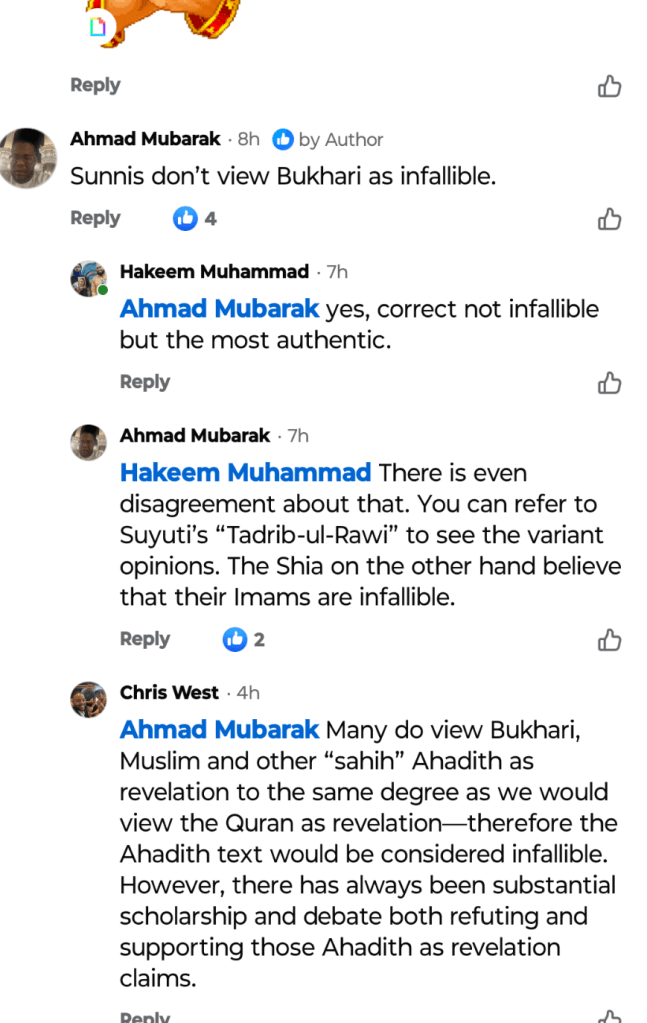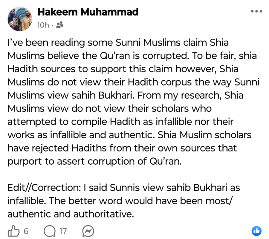 My brother, you need to step back from engaging in these theological debates because you are not qualified in the Islamic sciences. In your recent post, you claimed that Sunni Muslims view Hadith scholars as infallible. This is incorrect. Even after being corrected publicly, you edited your statement, which indicates a lack of proper grounding in the subject matter.