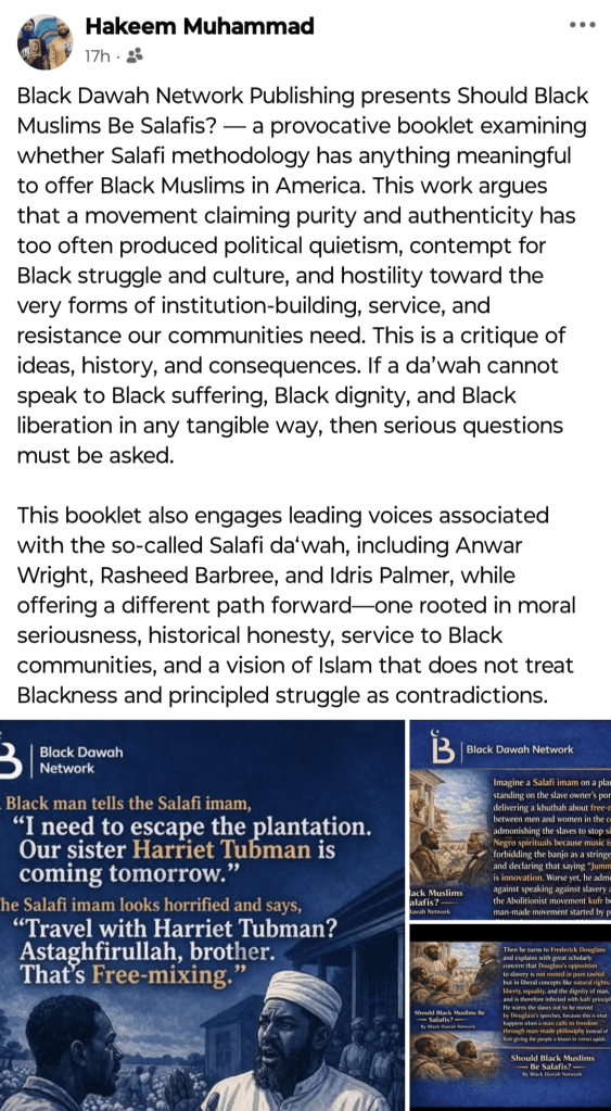 There is a broader issue here: individuals within the Black Muslim community who lack a firm grounding in the Islamic sciences—particularly in Arabic, Shariah, and the classical scholarly tradition—are more susceptible to adopting positions without proper context or depth. Islam was revealed in Arabic, preserved in Arabic, and its sciences are inseparable from that linguistic and scholarly foundation. When that foundation is absent, confusion and misguidance become more likely—not only for the individual, but also for those influenced by them.